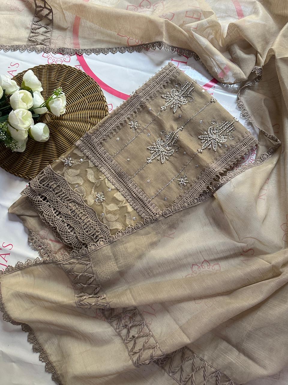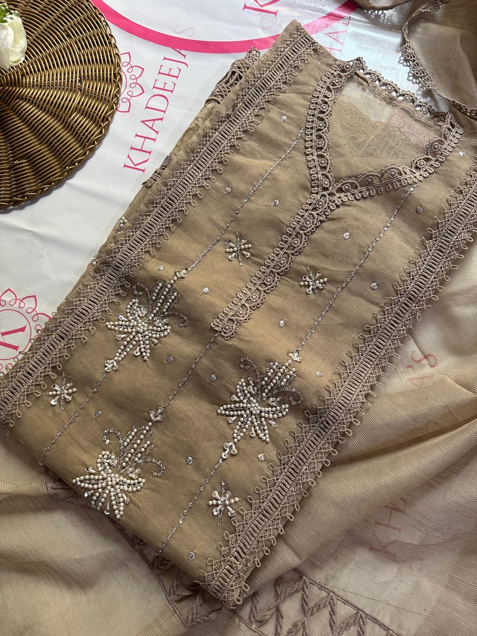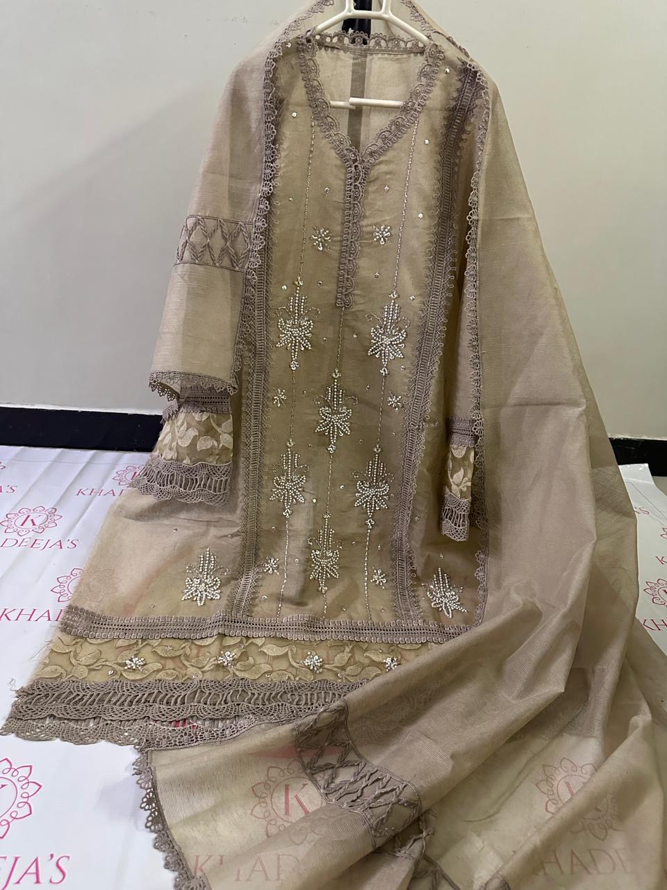 Zareekh is a graceful blend of tradition and elegance, crafted on premium khaddi net to reflect timeless sophistication. The delicately detailed shirt paired with a beautifully flowing dupatta creates a refined look that is perfect for festive occasions and elegant gatherings. Light, breathable, and effortlessly stylish, Zareekh celebrates classic craftsmanship while offering a modern, graceful silhouette. Available in multiple stunning colors, this ensemble is designed to make every moment feel special.